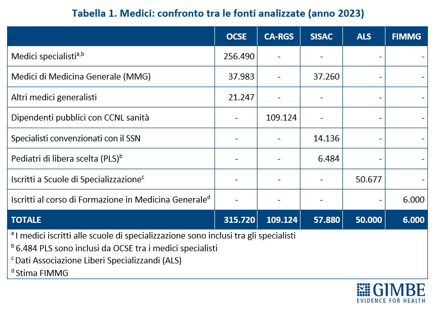 - Medici dipendenti pubblici. Secondo il Conto Annuale della Ragioneria Generale dello Stato (CA-RGS), i medici dipendenti del SSN erano 109.024 (1,85 medici per 1.000 abitanti).
